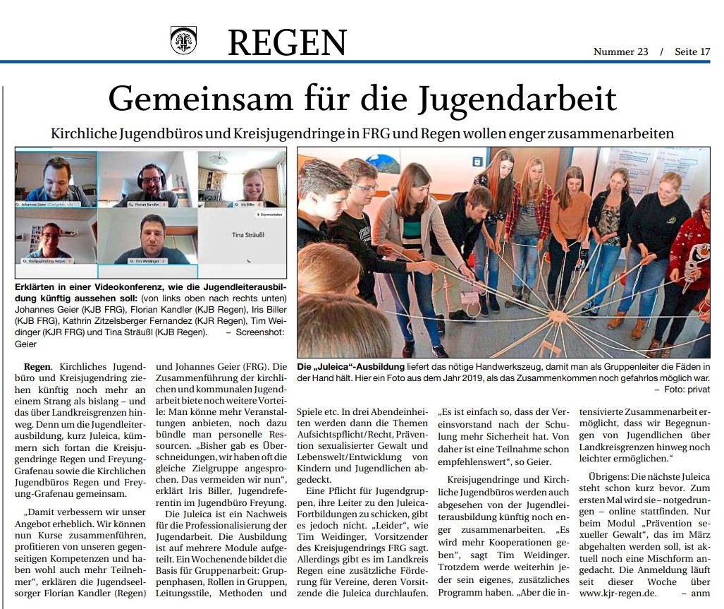 HIer der Zeitungsartikel zur Kooperation aus dem Viechtacher Bayerwaldboten vom 29.01.2021: